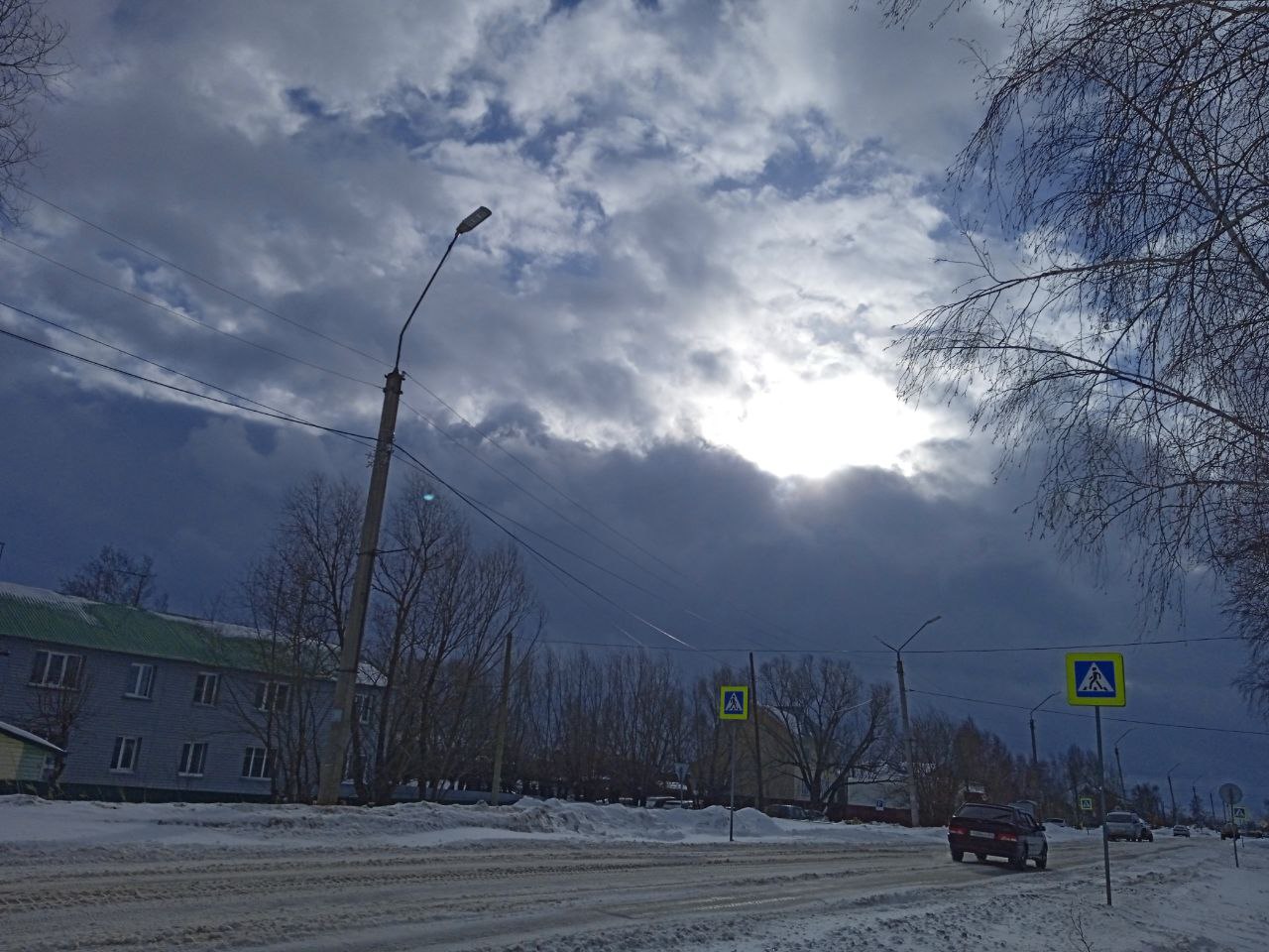 Ещё вчера до обеда уличные термометры показывали 0, +2. Шёл снег с дождём. На дорогах образовалась слякоть, с металлических крыш сходил снег. Однако буквально за час погода резко изменилась — сильный ветер разогнал тучи, температура начал понижаться.