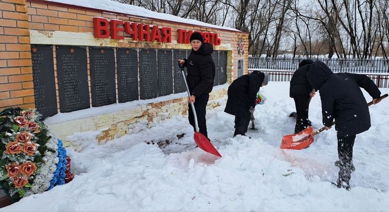 Волонтёры очистили место памяти после снегопадов.