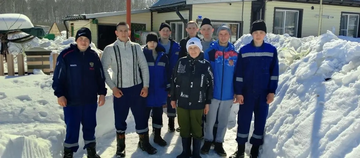 Воспитанники Каргатского СУВУ помогли маме своего тренера с уборкой снега.