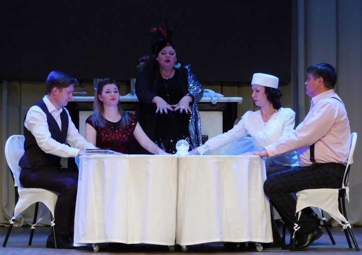 На сцене Культурно-досугового центра состоялся премьерный показ спектакля по пьесе Ноэля Кауарда «Невероятный сеанс или Неугомонный дух» режиссера Максима Иванова.